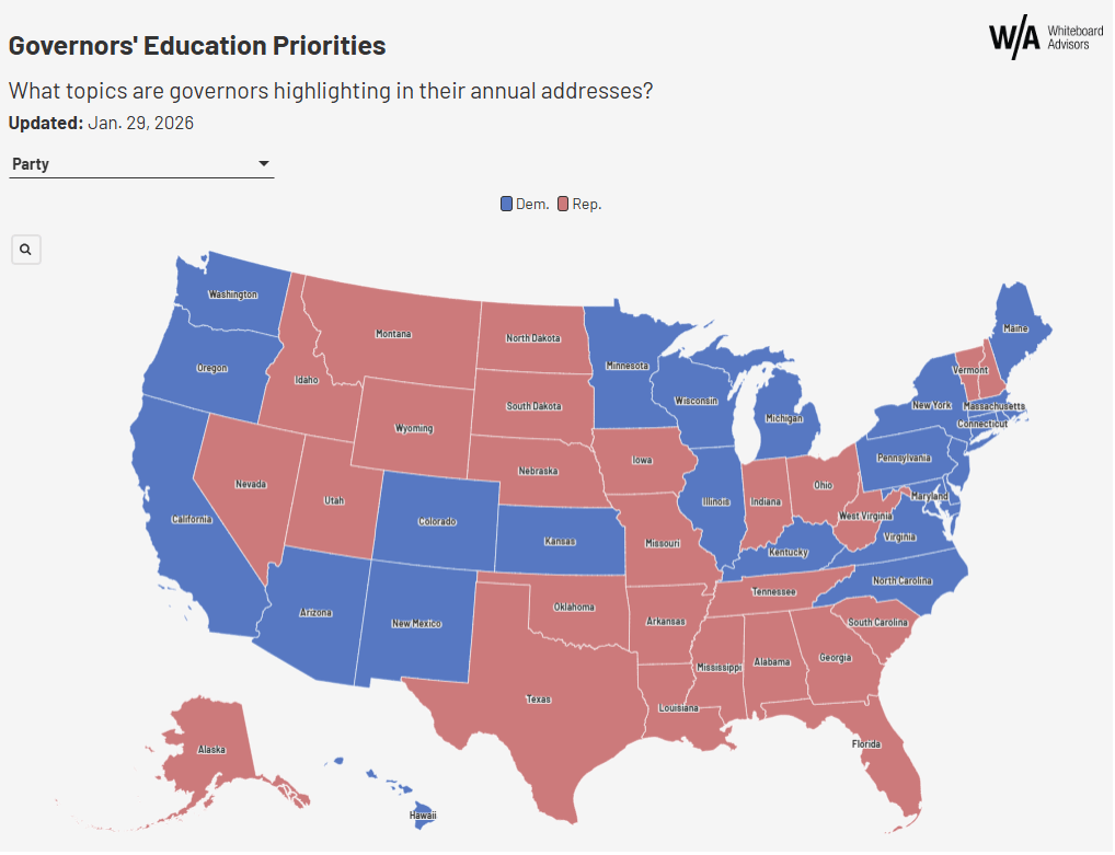 To make these signals easier to see, we’ve mapped the key education and workforce issues mentioned by each governor—highlighting where priorities are clustering, where states are diverging, and which topics are gaining momentum early in 2026.